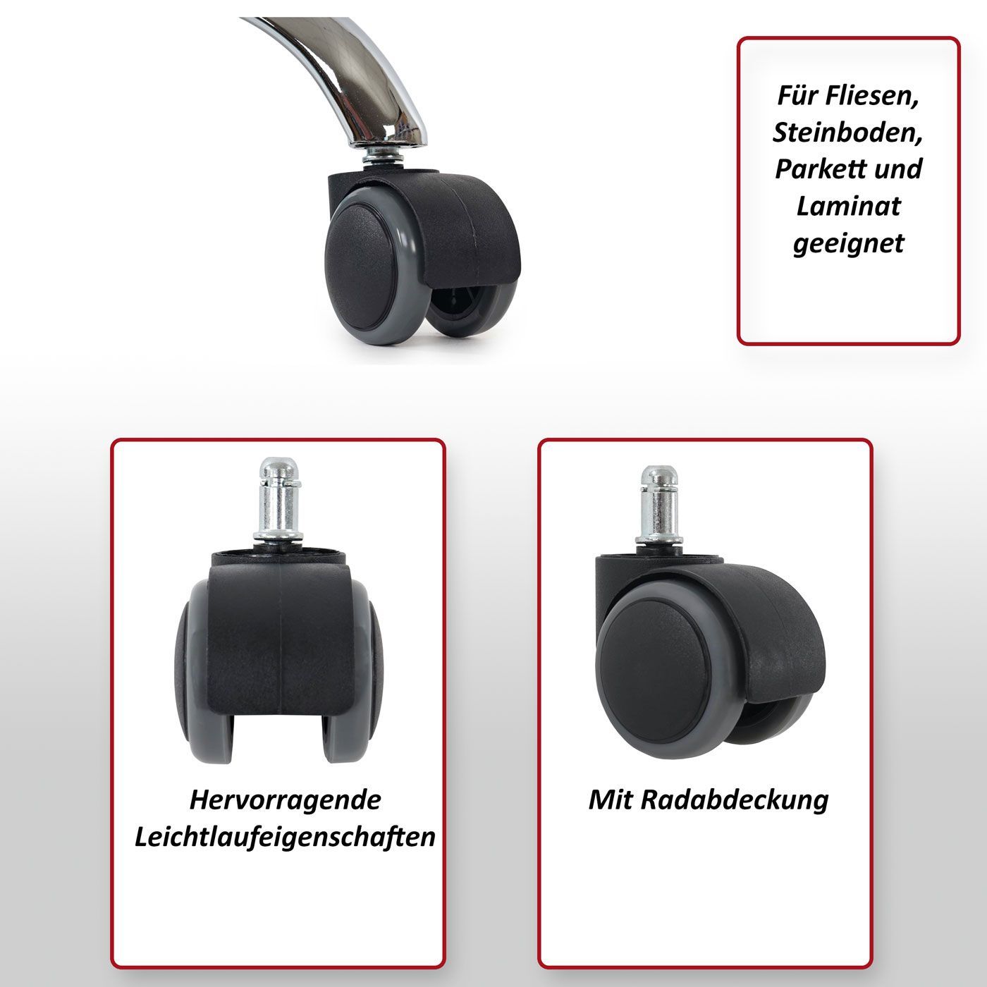 Mendler 5er-Set Hartbodenrollen HWC-H86, Bürostuhl-Rollen Stuhlrollen, 150kg belastbar Ø 11mm