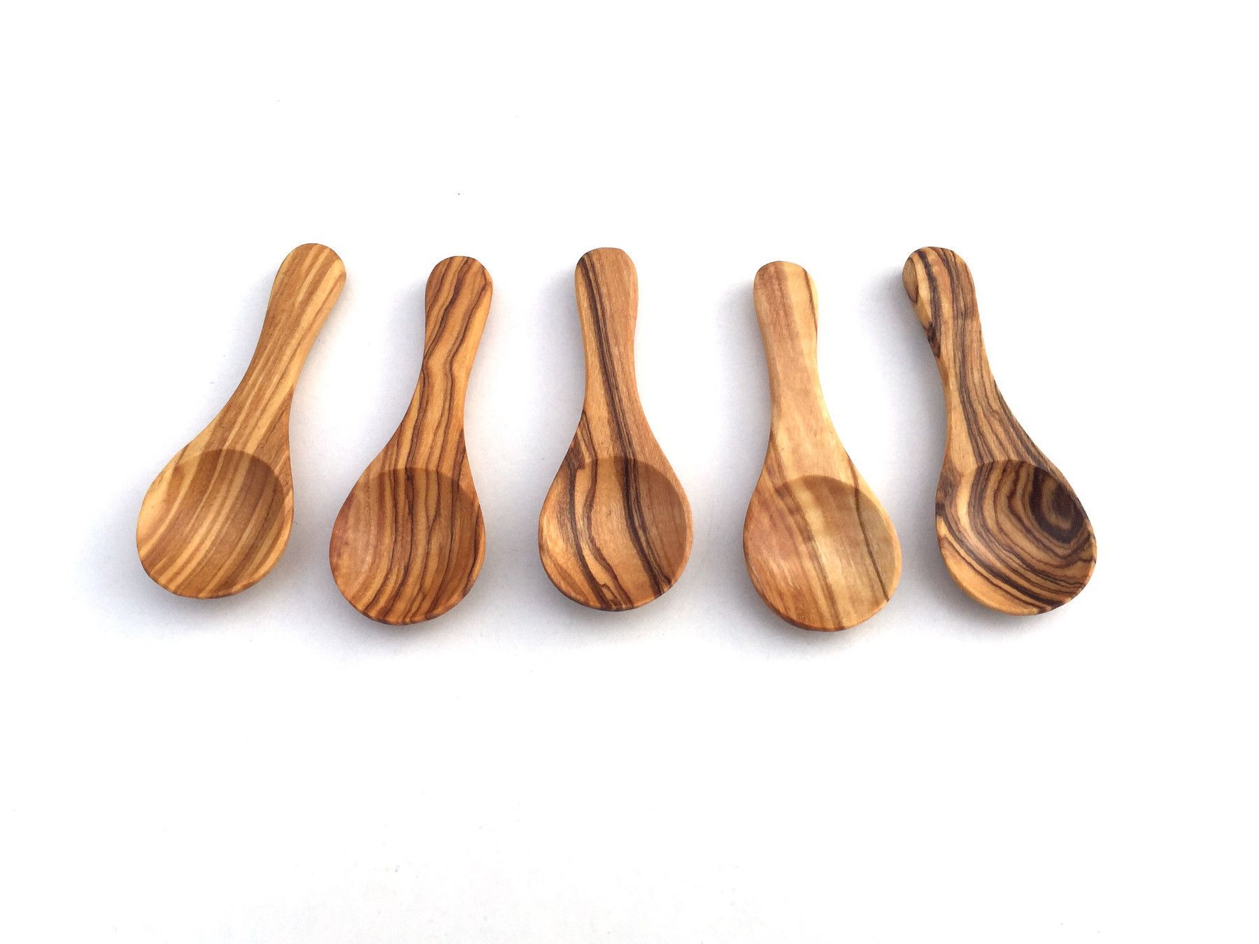 5er Set Mini-Löffel 8 cm, Gewürzlöffel, Salzlöffel, Kräuterlöffel, aus Olivenholz
