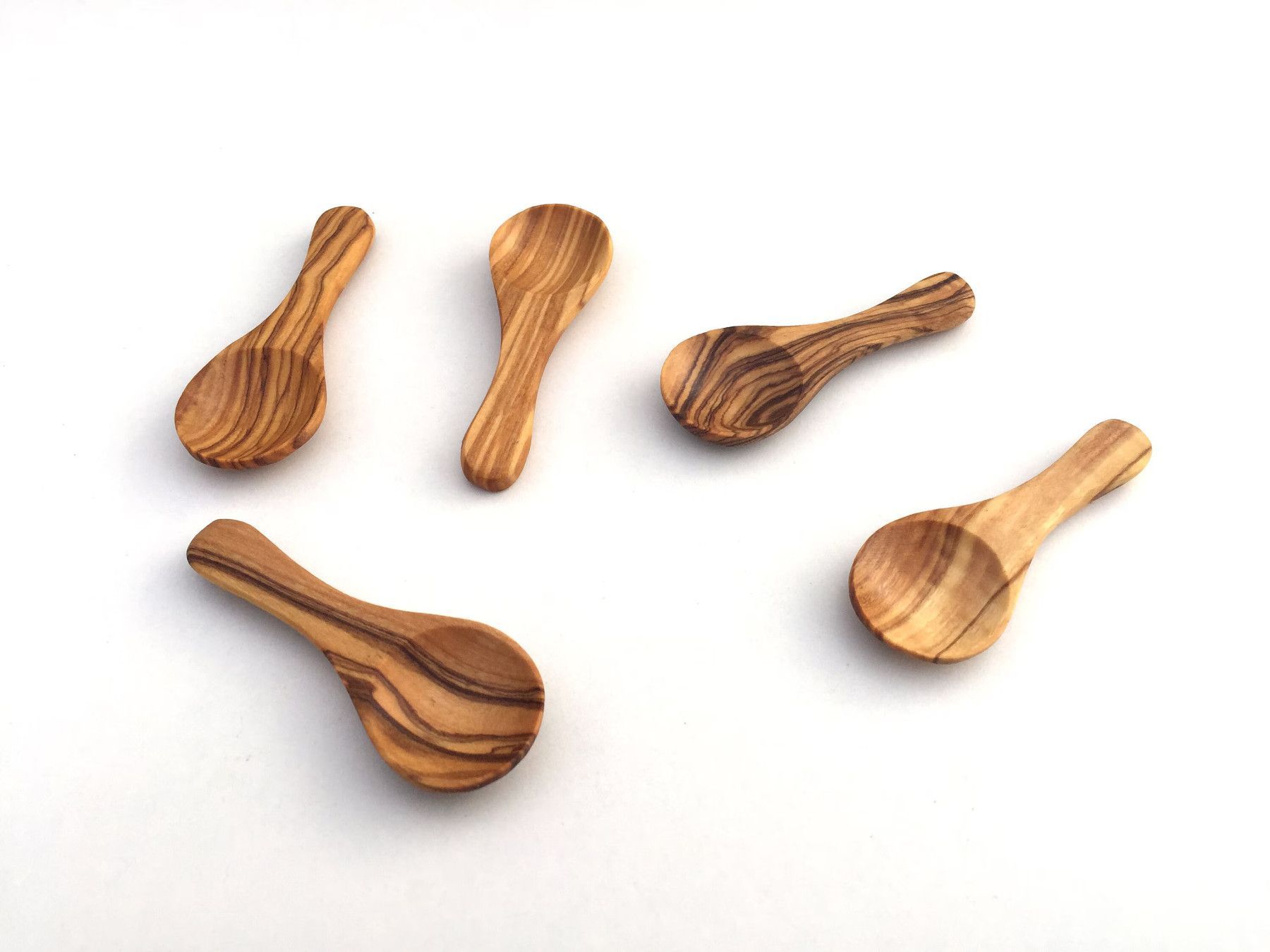 5er Set Mini-Löffel, Gewürzlöffel, Dosierlöffel, aus Olivenholz, Handarbeit