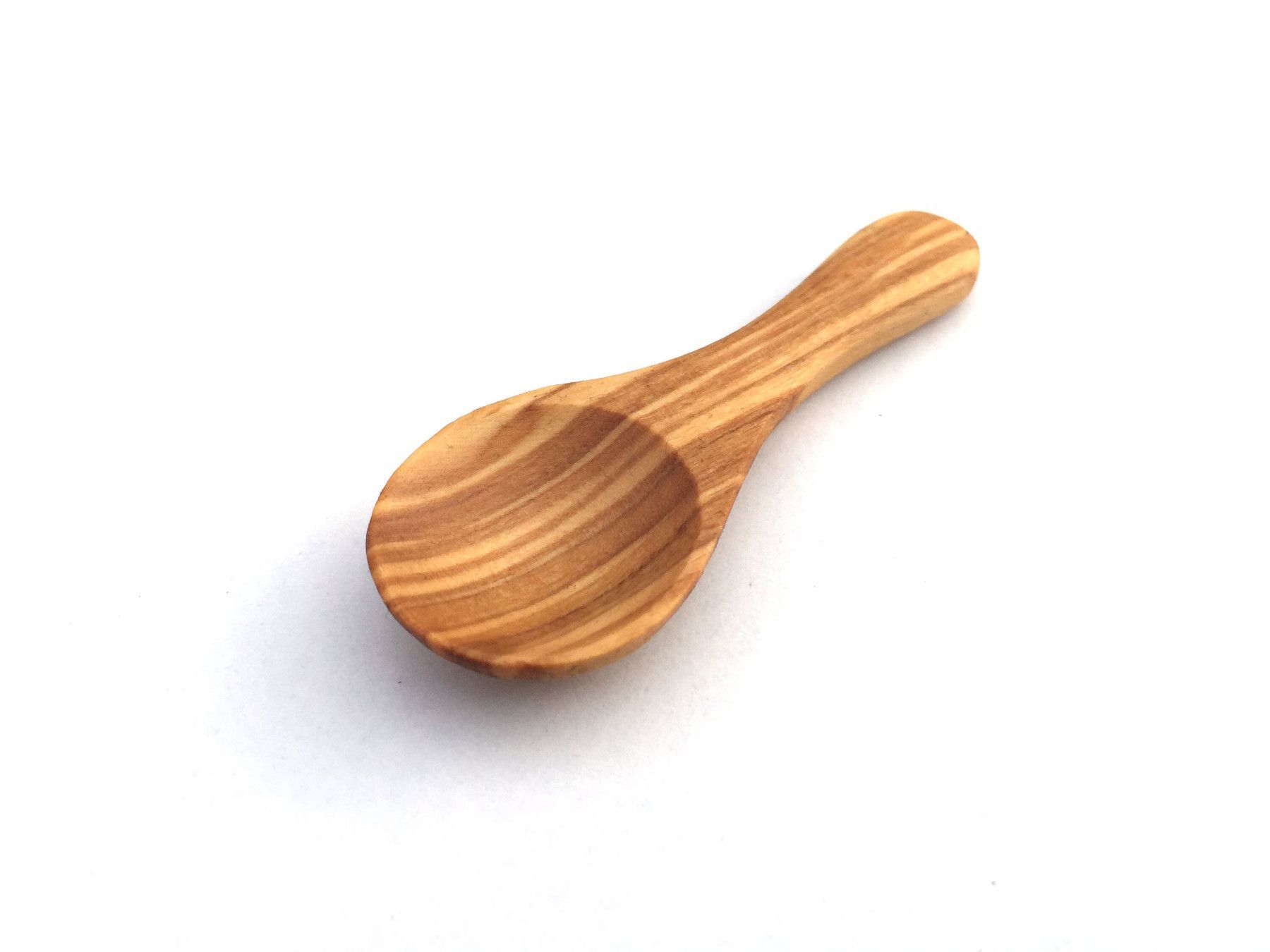 Mini Löffel 8 cm runder Griff Gewürzlöffel, Handgefertigt aus Olivenholz