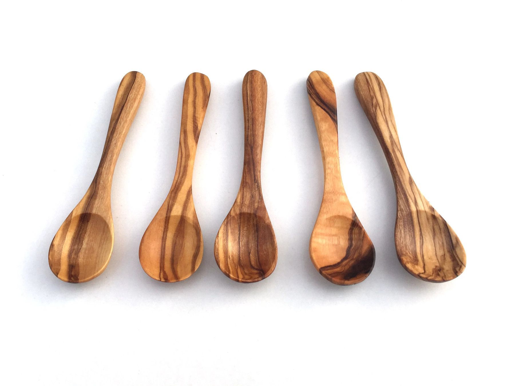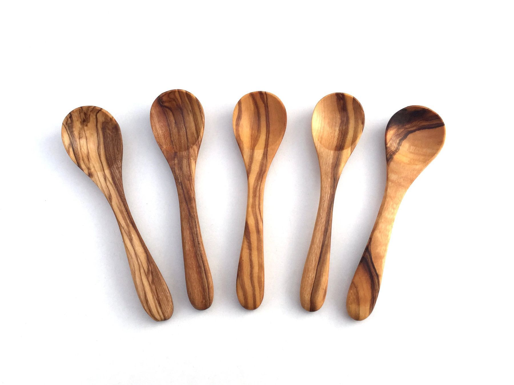 5er Set Mini-Löffel, Gewürzlöffel, Dosierlöffel, aus Olivenholz, Handarbeit