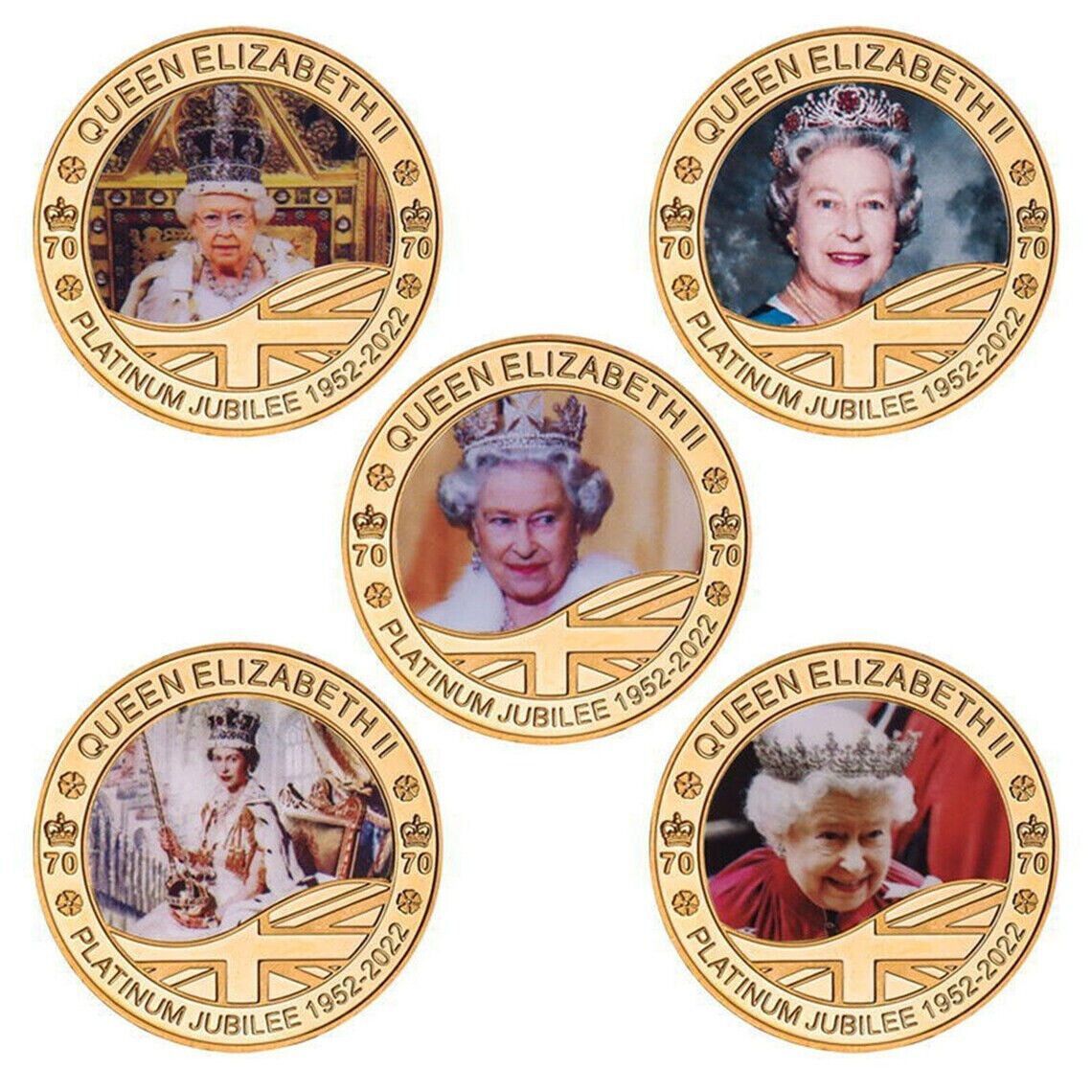 5er Set Queen Elizabeth II 70. Jahrestag Platinum Jubileum vergoldet