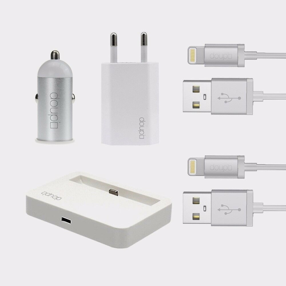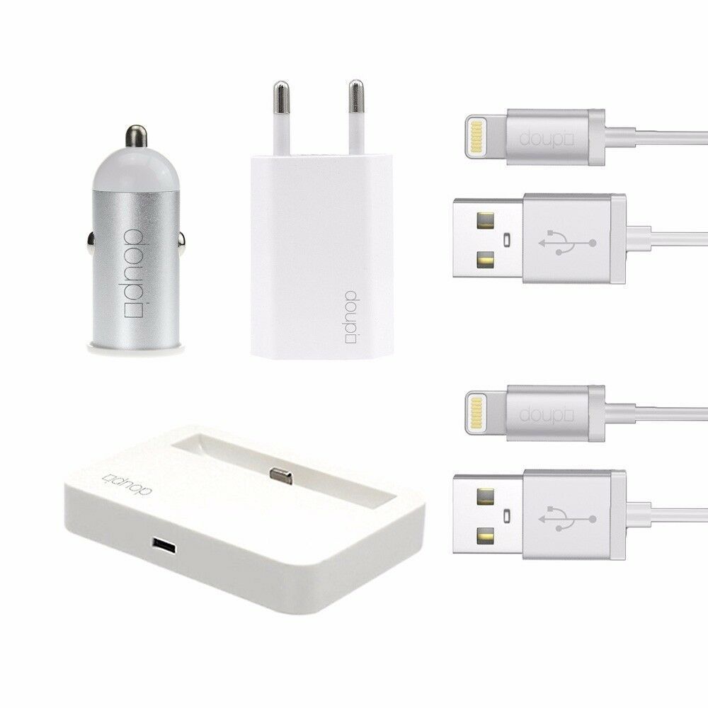 5in1 Lade Adapter Dock Netzteil Auto iPhone 8 7 6 6S Plus 5 5C 5S SE iPod Weiß
