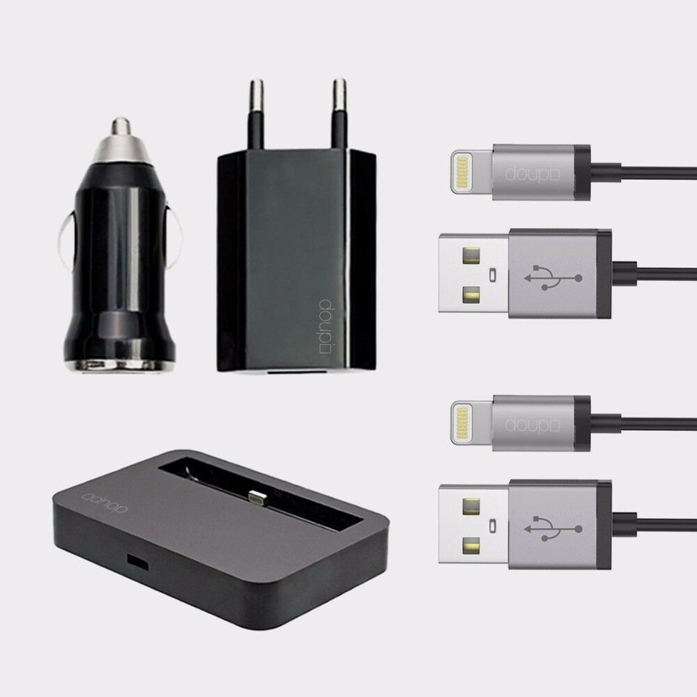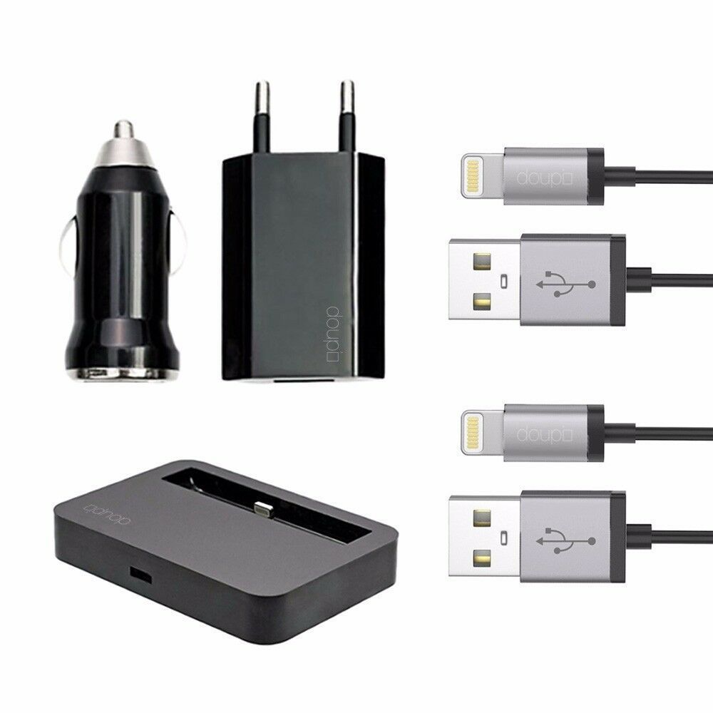 5in1 Lade Adapter Dock Netzteil Auto iPhone 8 7 6 6S Plus 5 5C SE iPod Schwarz