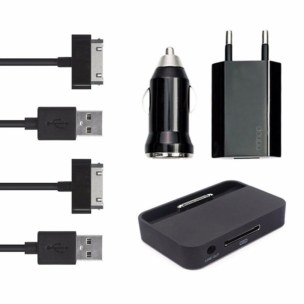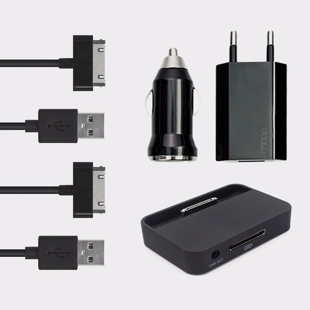 5in1 Ladeset Auto Adapter Netzteil Kabel Dockingstation iPhone 4 4S iPod Schwarz