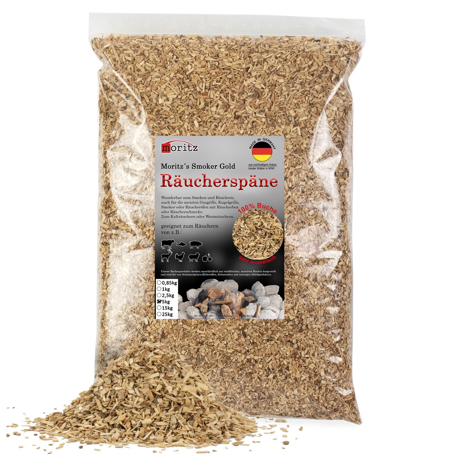 5kg Räucherspäne Buche fein 0,75 -2 mm Kalt-/Heißräuchern Fisch Fleisch uvm
