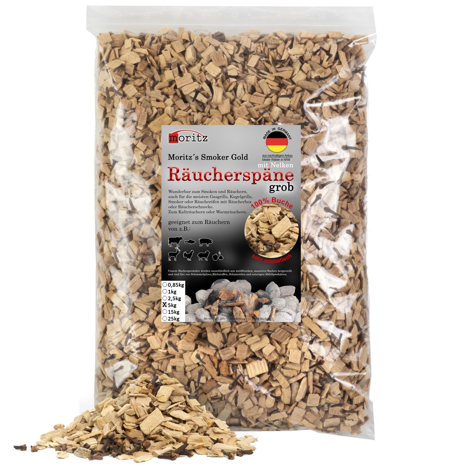 5kg Räucherspäne Buche mit Nelke grob 6 -12 mm Kalt-/Heißräuchern Fisch Fleisch uvm