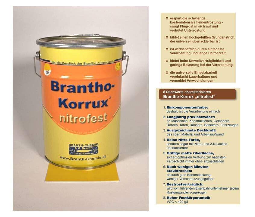 Branth 5l Brantho Korrux nitrofest RAL 1021 rapsgelb Rostschutz Metallschutz Farbe matt