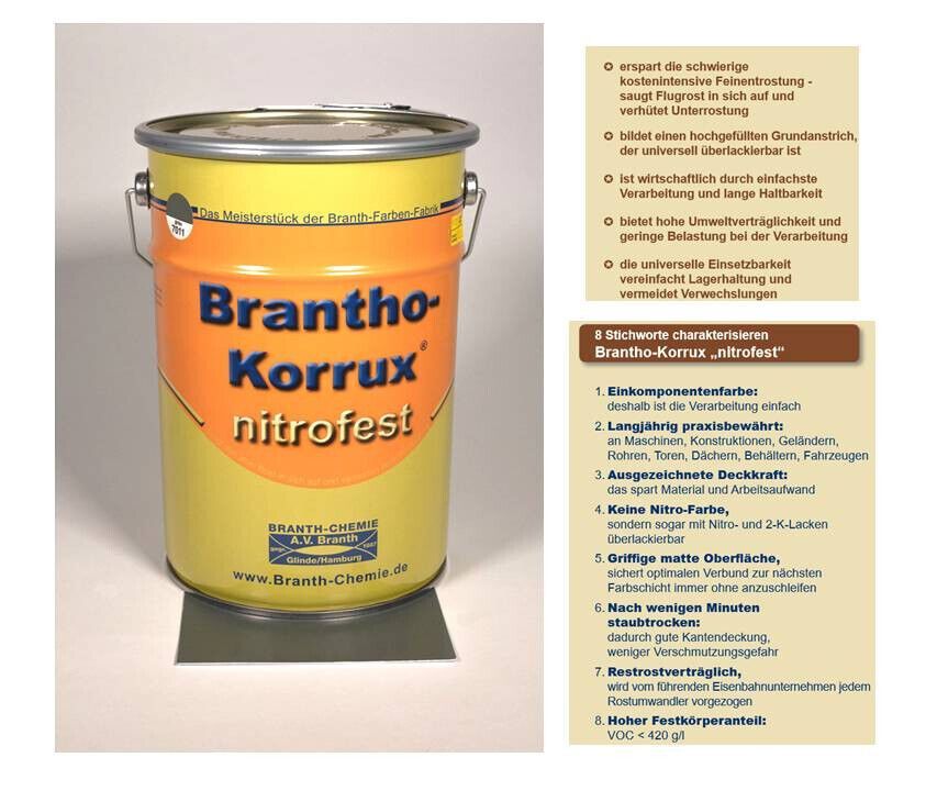 Branth 5l Brantho Korrux nitrofest RAL 7011 grau Rostschutz Metallschutz Farbe Branth