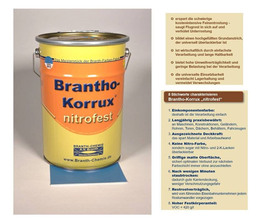 Branth 5l Brantho Korrux nitrofest Rostschutz Farbe RAL 5012 lichtblau