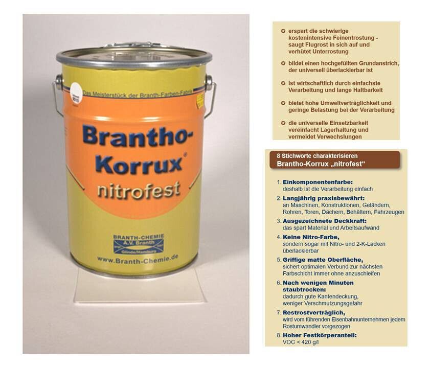 Branth 5l Brantho Korrux nitrofest Rostschutz Farbe RAL 9010 weiß matt