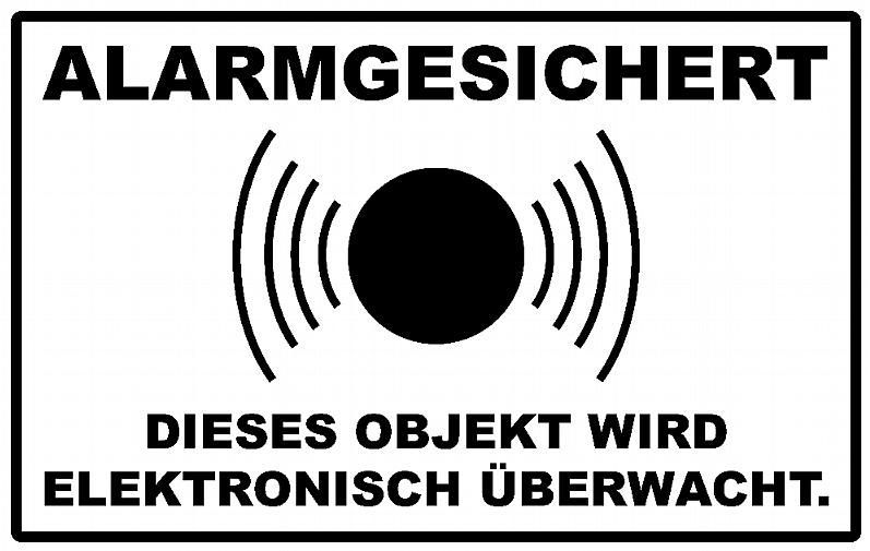 5x Alarm gesichert, Alarmanlage, Überwacht Aufkleber 8x5 cm Weiß/ Schwarz