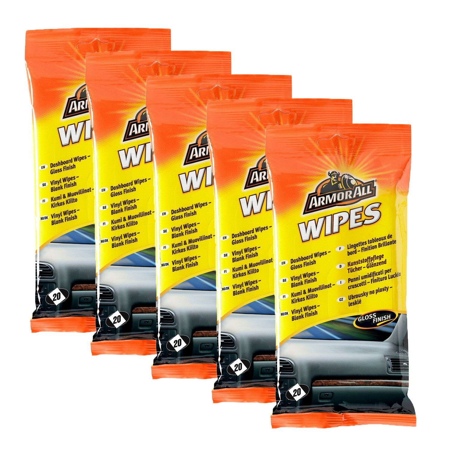 5x ARMOR ALL Auto Kunststoff Reinigungstücher glänzend Cockpit Pflege 20er