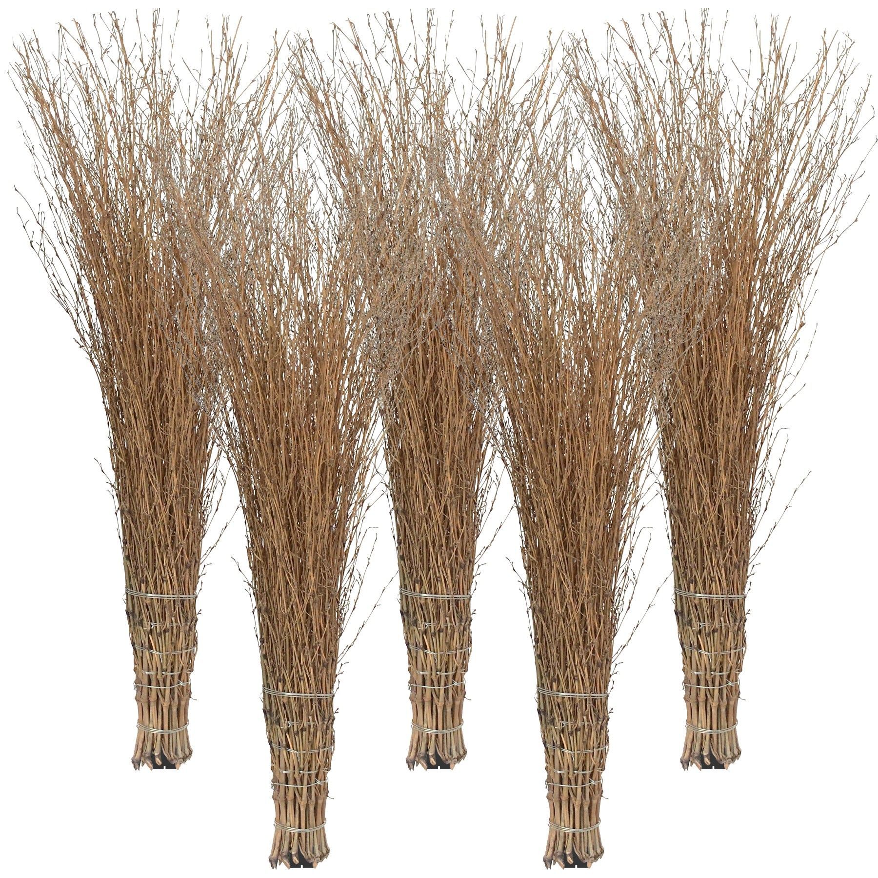 5x Bambusbesen, Stallbesen aus Bambusreisig, Reisigbesen mit Kunststoff-Stielaufnahme