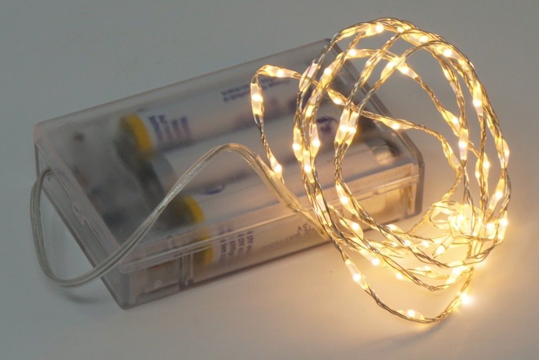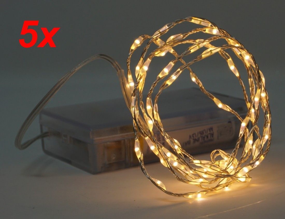 5x Deko Beleuchtung Draht Lichterkette 100 cm Timer 66 Micro LED warmweiß Batterie