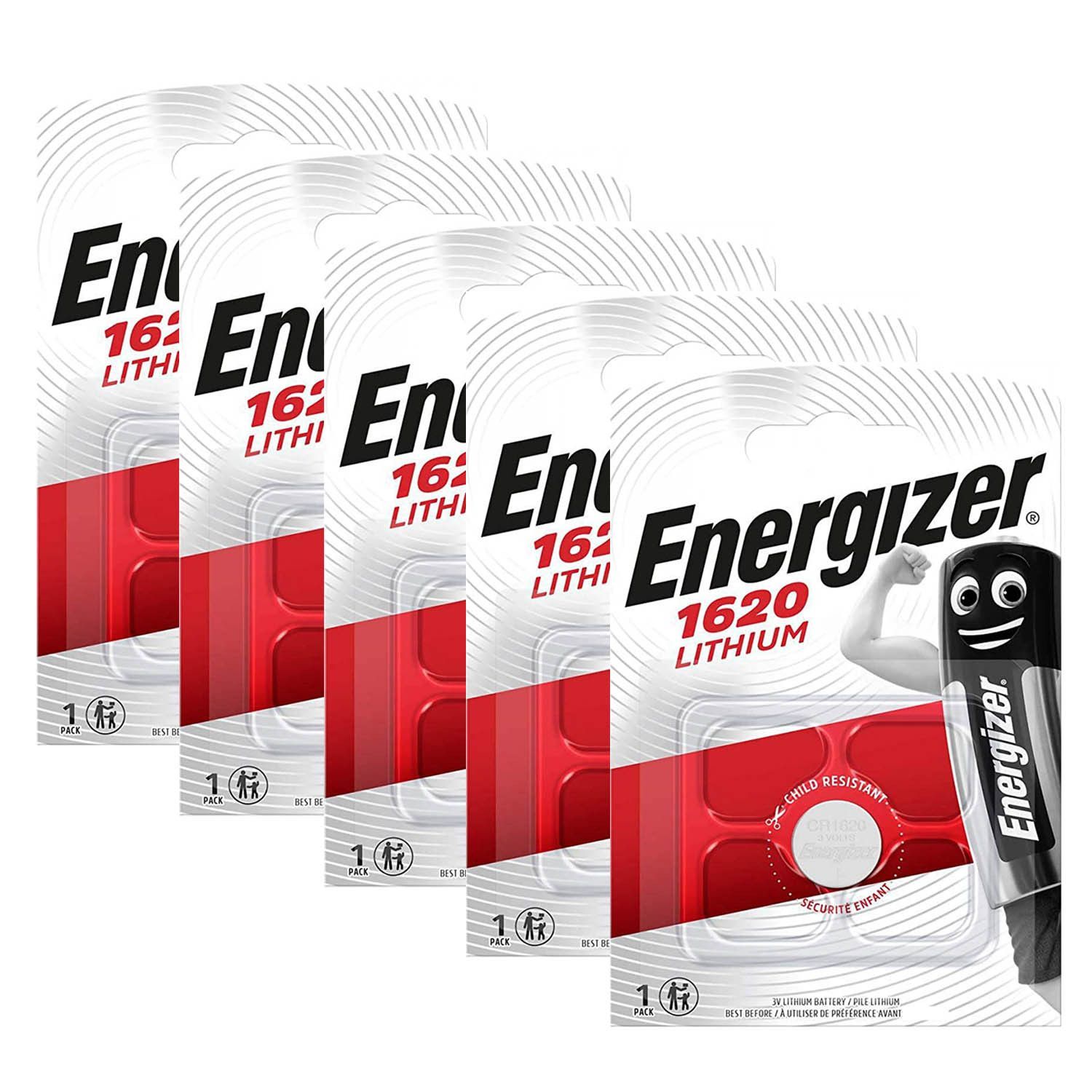 Energizer 5x Energizer CR 1620 3V Lithium Batterie Knopfzelle CR1620 81mAh im Blister