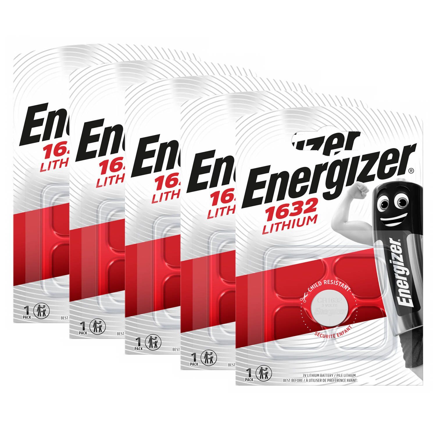 Energizer 5x Energizer CR 1632 3V Batterie Lithium Knopfzelle DL1632 1er Blister CR1632