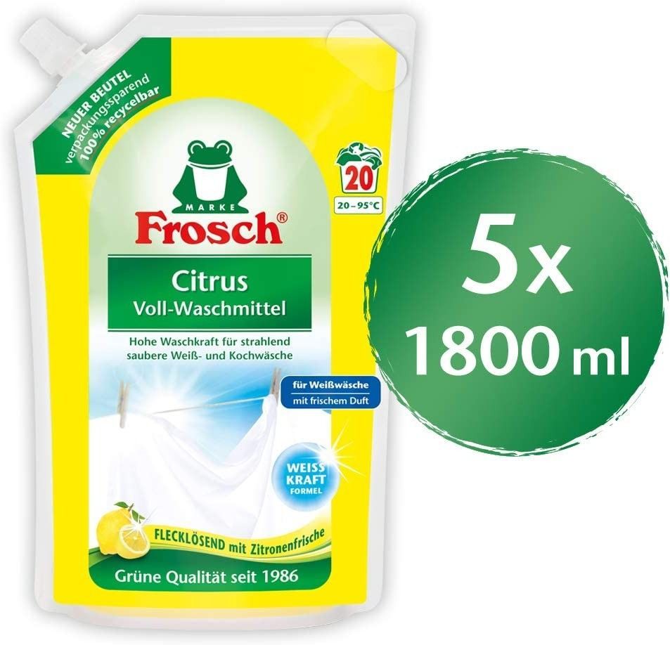 Frosch 5x Frosch Citrus Voll-Waschmittel 1,8 l, (5 x 20 WL)