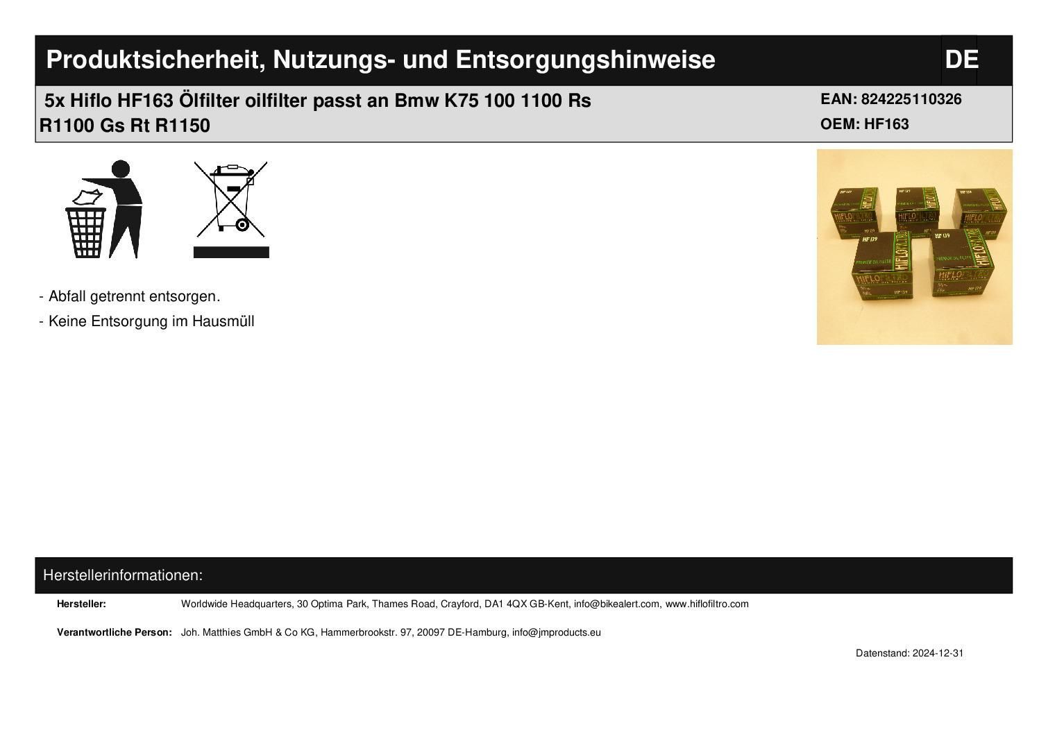 5x Hiflo HF163 Ölfilter oilfilter passt an Bmw K 75 85-97 100 1200 R 1100 R 1150