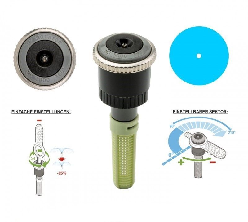 5x Hunter Rotator Düse MP 3000 360° Wurfweite 6,7 bis 9,1 m + Einstellstellschlüssel
