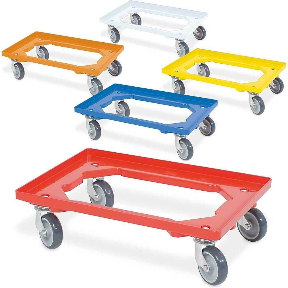 5x Logistikroller für Behälter 600x400 mm, je 1 Roller blau/ gelb/ orange/ rot/ weiß