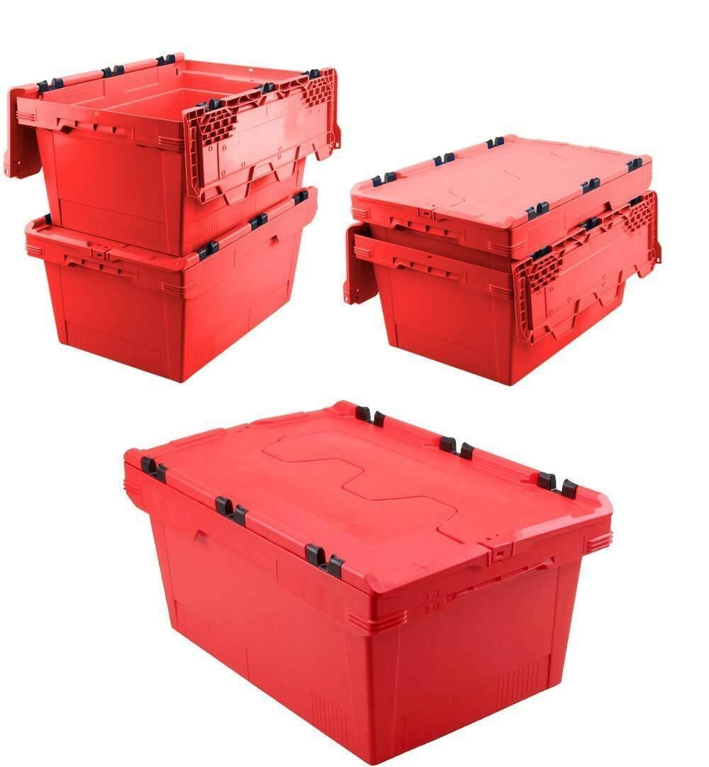 5x Mehrwegbehälter mit Deckel, rot, verplompbar, LxBxH 600x400x200 mm, 29 Liter