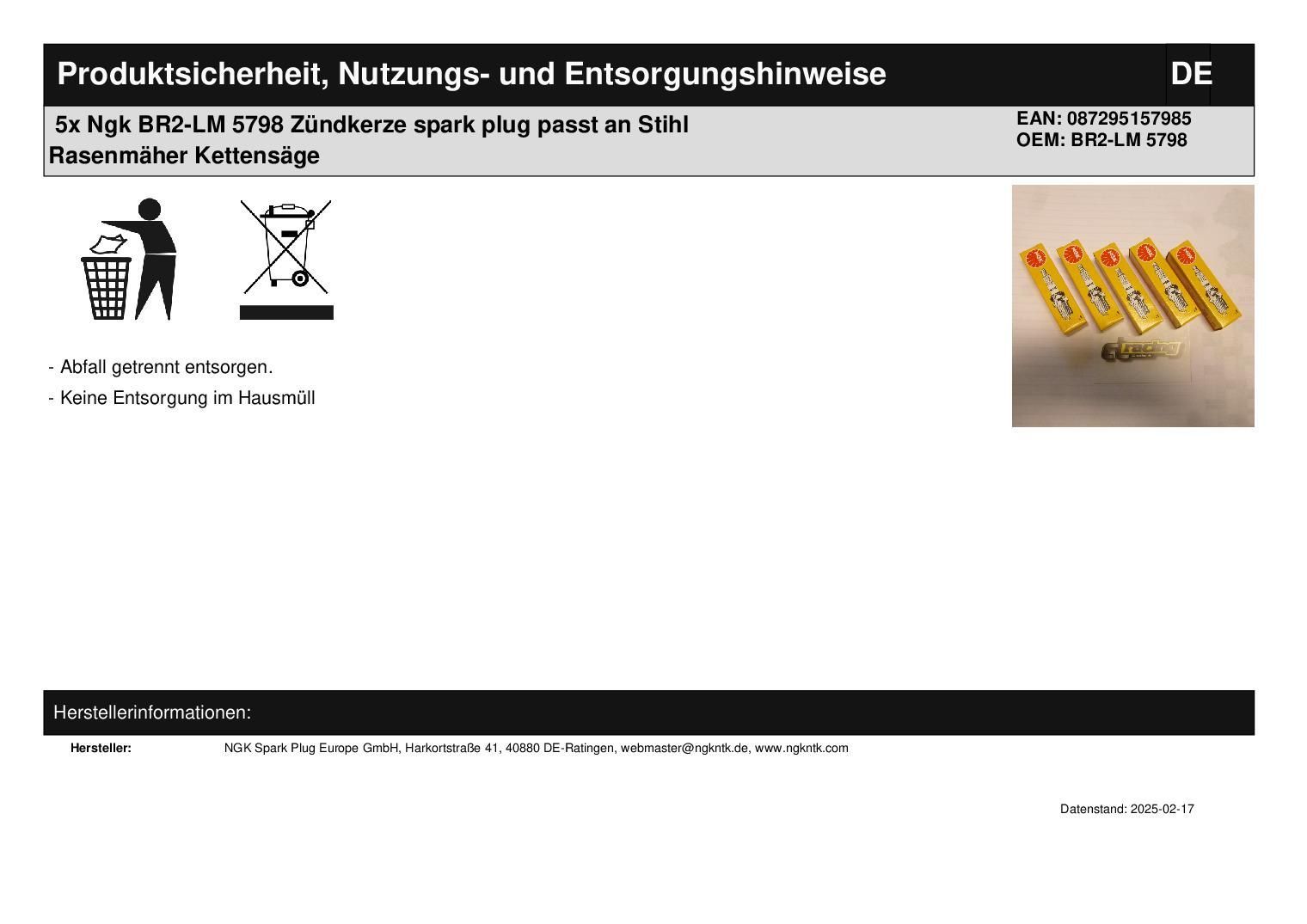 NGK 5x Ngk BR2-LM 5798 Zündkerze spark plug passt an Stihl Rasenmäher Kettensäge