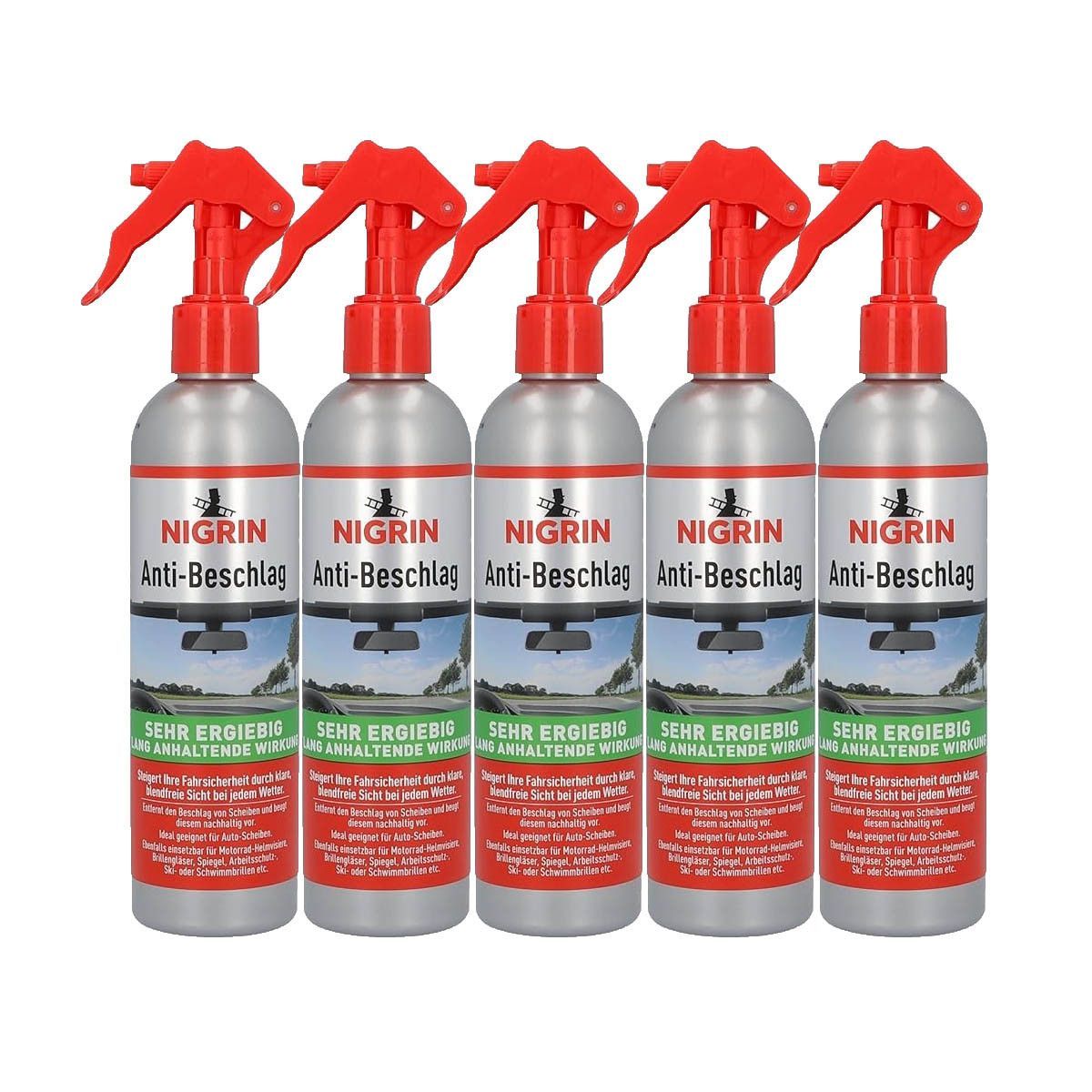 Nigrin 5x NIGRIN Anti Beschlag Pumpzerstäuber 300ml - Klare Sicht für Auto & Scheiben