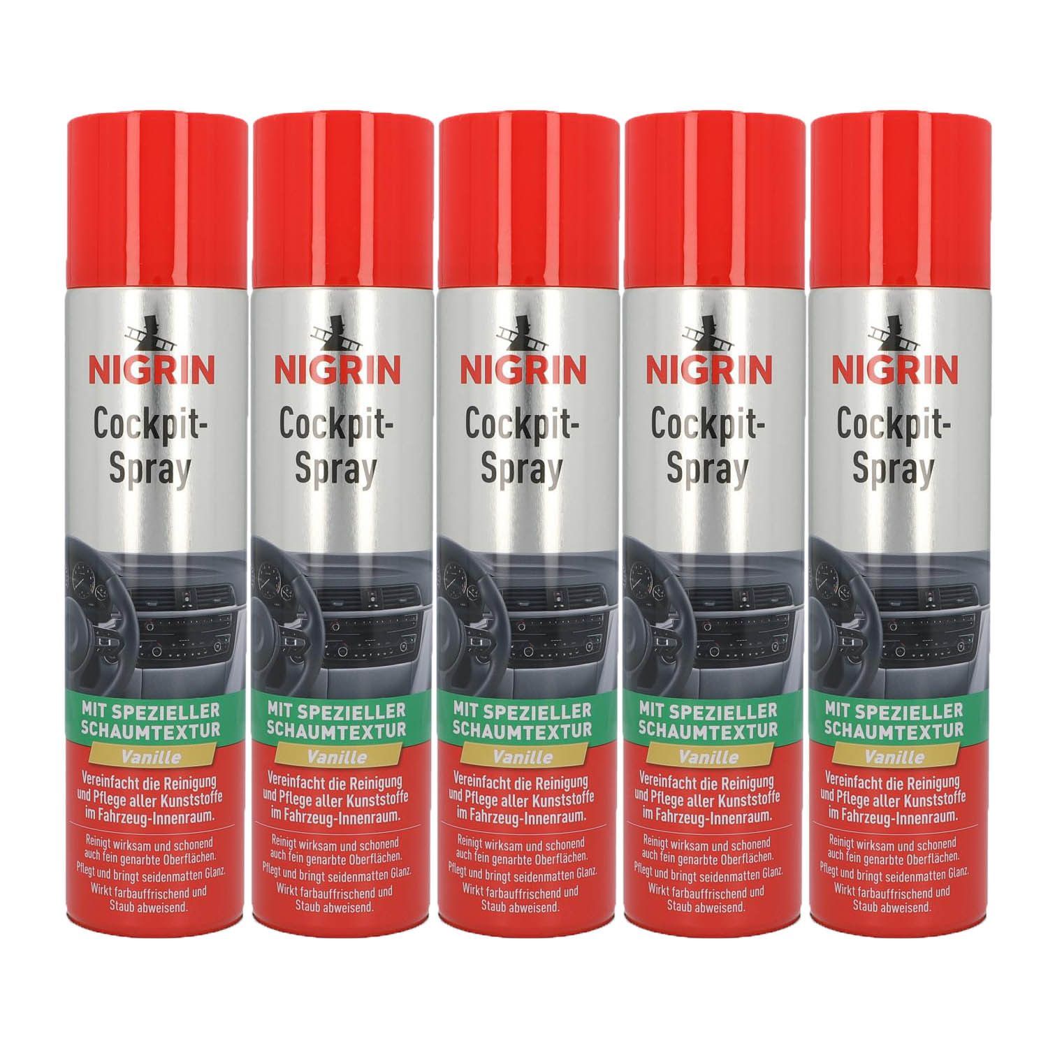 Nigrin 5x Nigrin Cockpit Spray Vanille Sprühdose 400 ml Cockpitreiniger