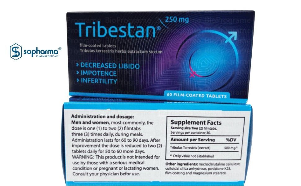 TRIBESTAN Sopharma 250 mg. Nahrungsergänzungsmittel. Tribulus-Terrestris-Booster. 5 x 60 Tabletten Versand mit Sendungsverfolgungsnummer! Alle unsere Produkte sind original und haben eine gute Haltbarkeit. KEIN REZEPT ERFORDERLICH TRIBESTAN ist ein pflanzliches Produkt, das zur Steigerung der Libido