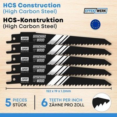 5x Säbelsägeblätter für Holz und Kunststoff HCS 6 TPI