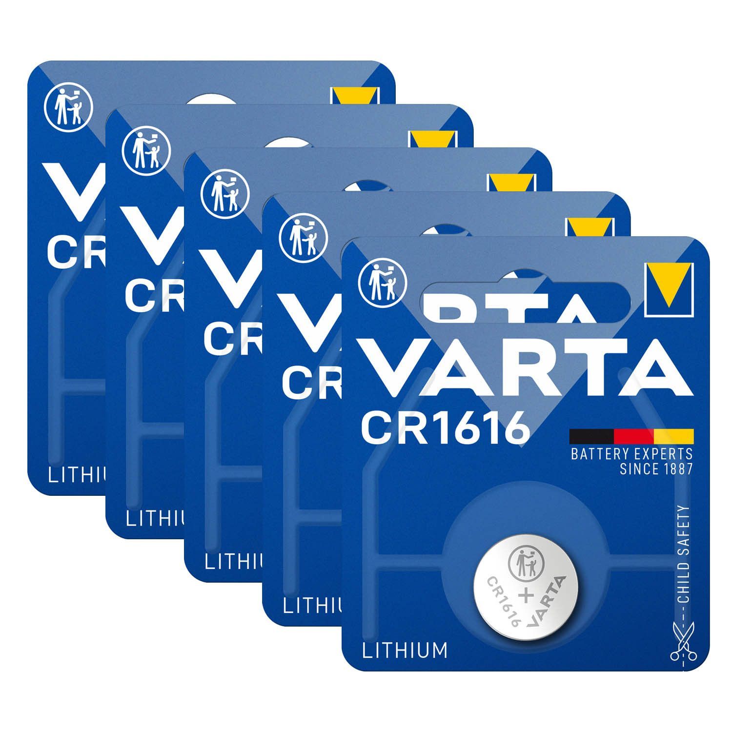 Varta 5x Varta Knopfzelle Lithium CR1616 3V Batterie 1er Blister CR 1616
