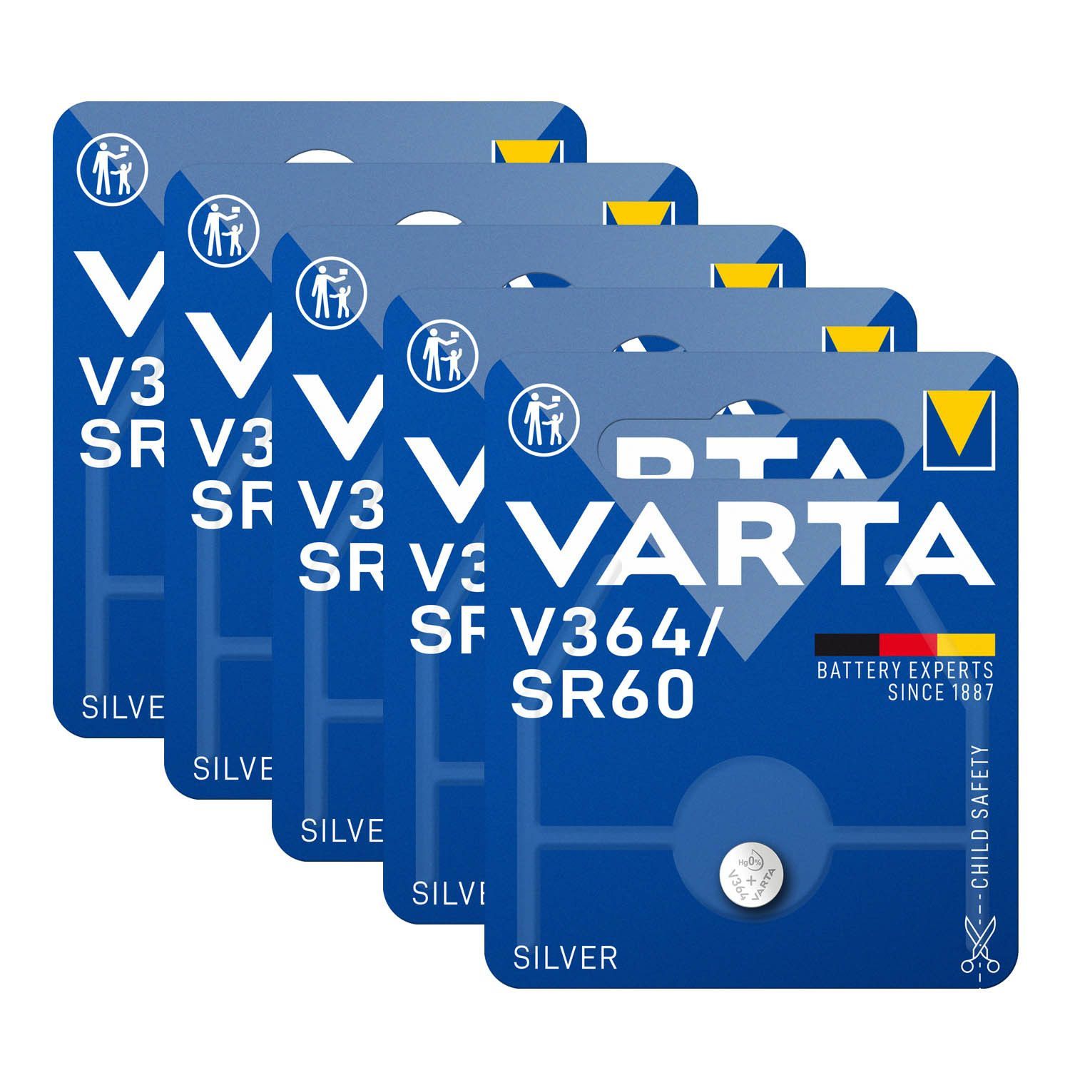 Varta 5x Varta Knopfzelle Silver Oxide V364 SR60 1,55 V Batterien 1er Blister 364