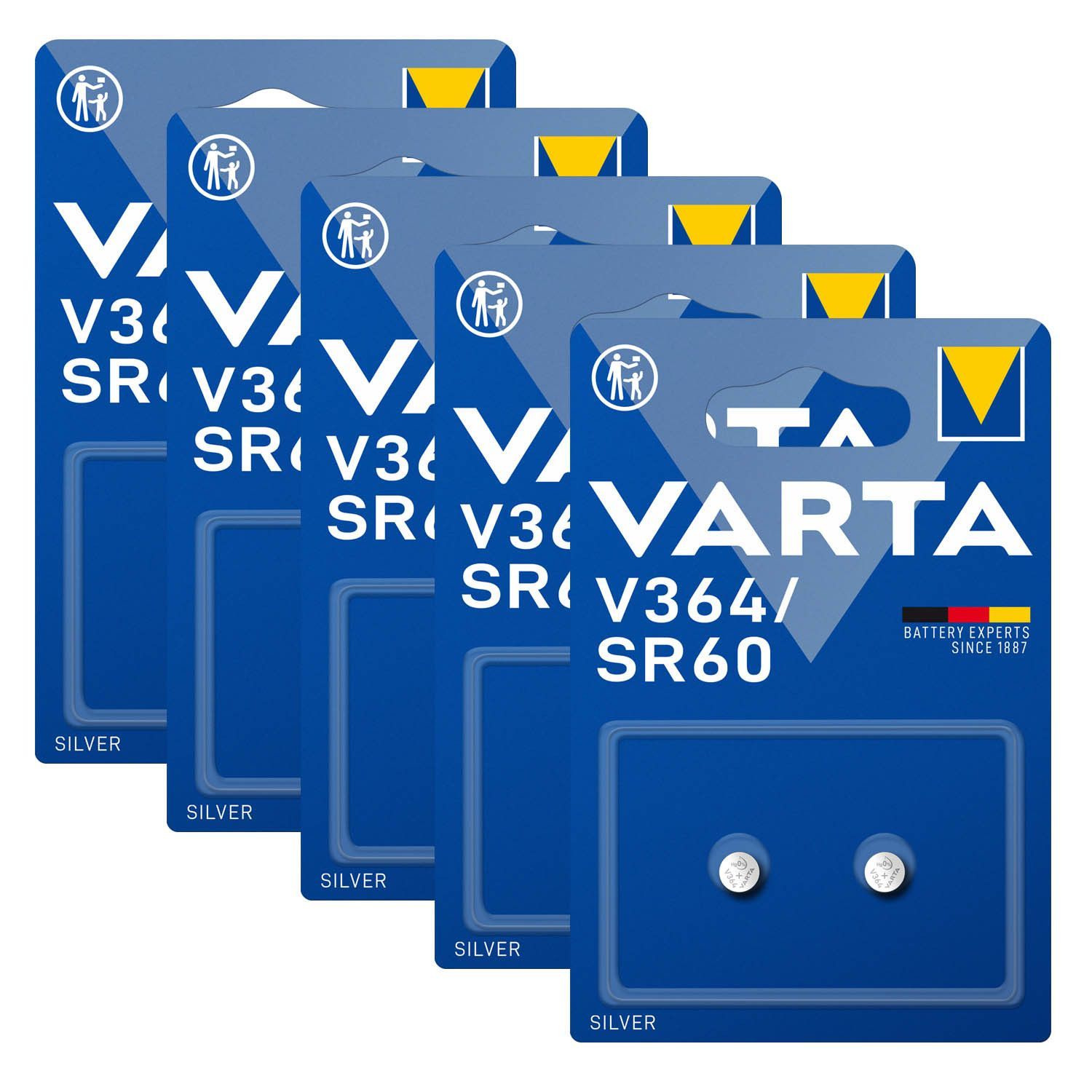Varta 5x Varta Knopfzelle Silver Oxide V364 SR60 1,55 V Batterien 2er Blister 364