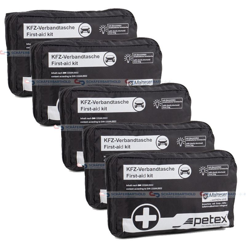Petex 5x Verbandtasche Verbandstasche Erste-Hilfe Verbandskasten PKW DIN13164 Schwarz