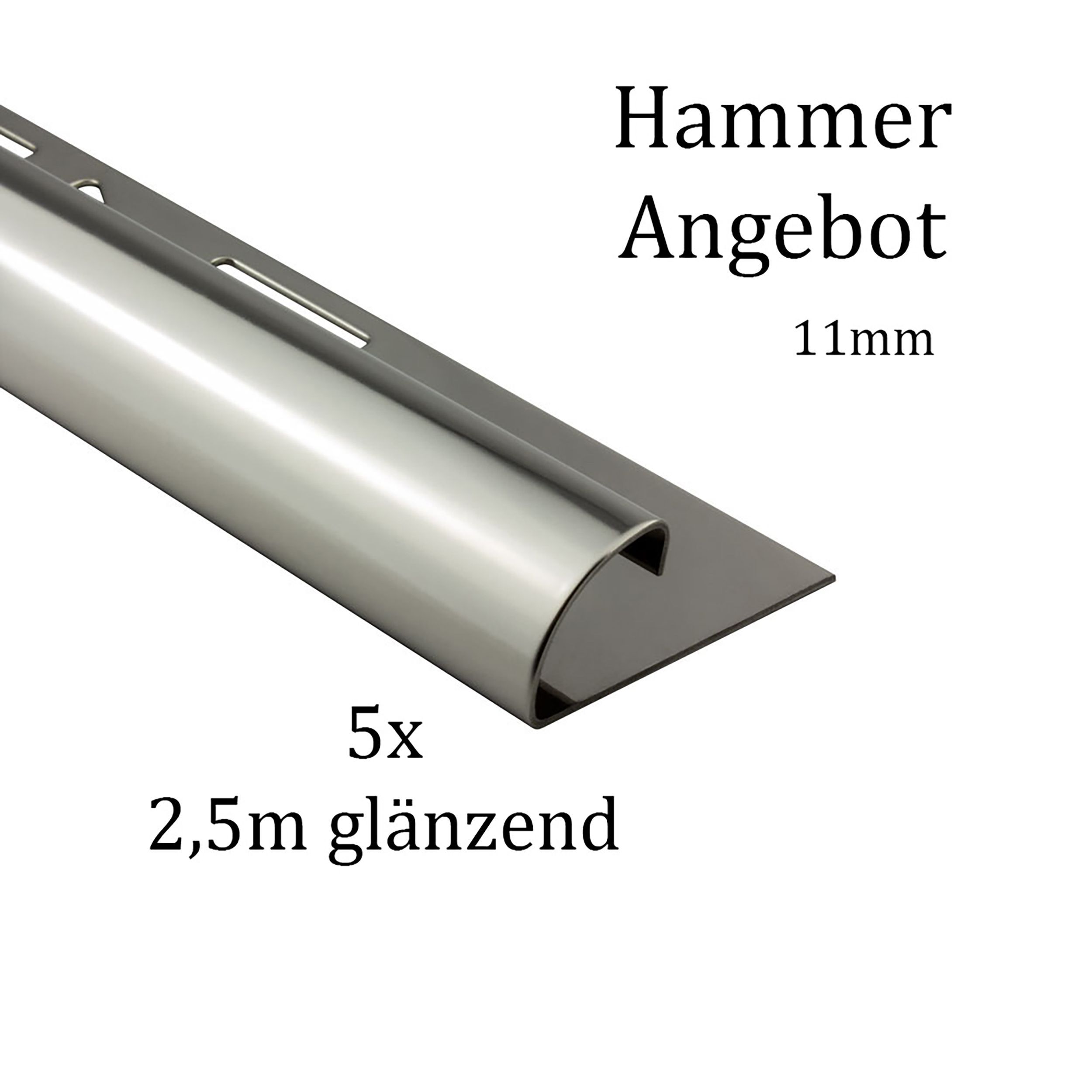 5x Viertelkreis Edelstahlschiene Fliesenschiene Fliesenprofil 11mm glänzend
