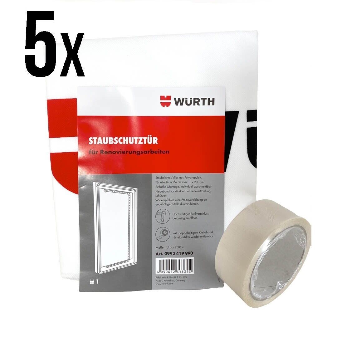 5x Würth Staubschutztür mit Reißverschluss Bautür 1,10m x 2,20m 0992419990