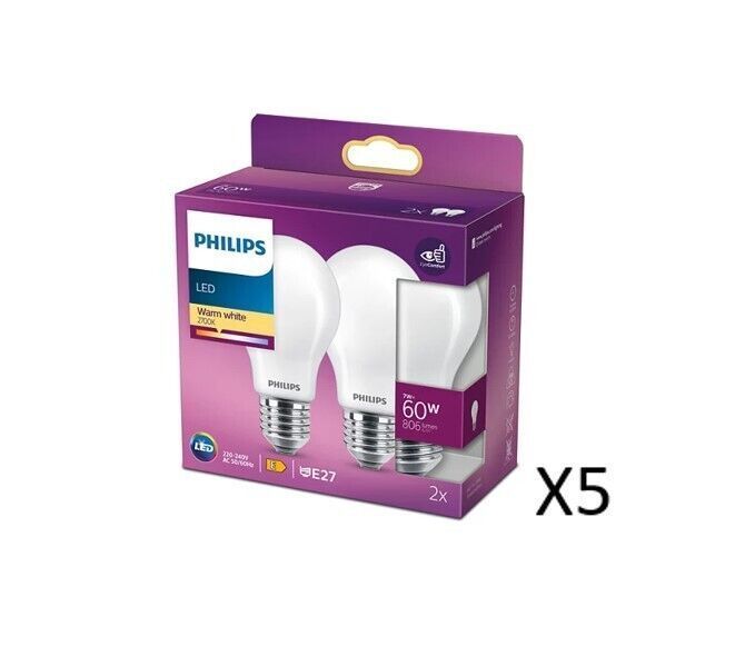 Philips 5x2 Stück Philips Classic A 7W(60W) 827 806lm Matt E27