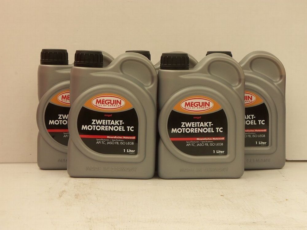 Racingteam verkauft 5 x 1 Liter Meguin Megol 2-Taktöl TC mineralisch . Modernes mineralisches 2-Takt Mischöl für 2-Takt Motorräder Scooter und auch andere 2-Taktmotoren . Reduziert Ablagerungen und senkt den Verschleiß . Für Getrennt - und Gemischschmierung geeignet . Spezifikationen : API TC ; JASO