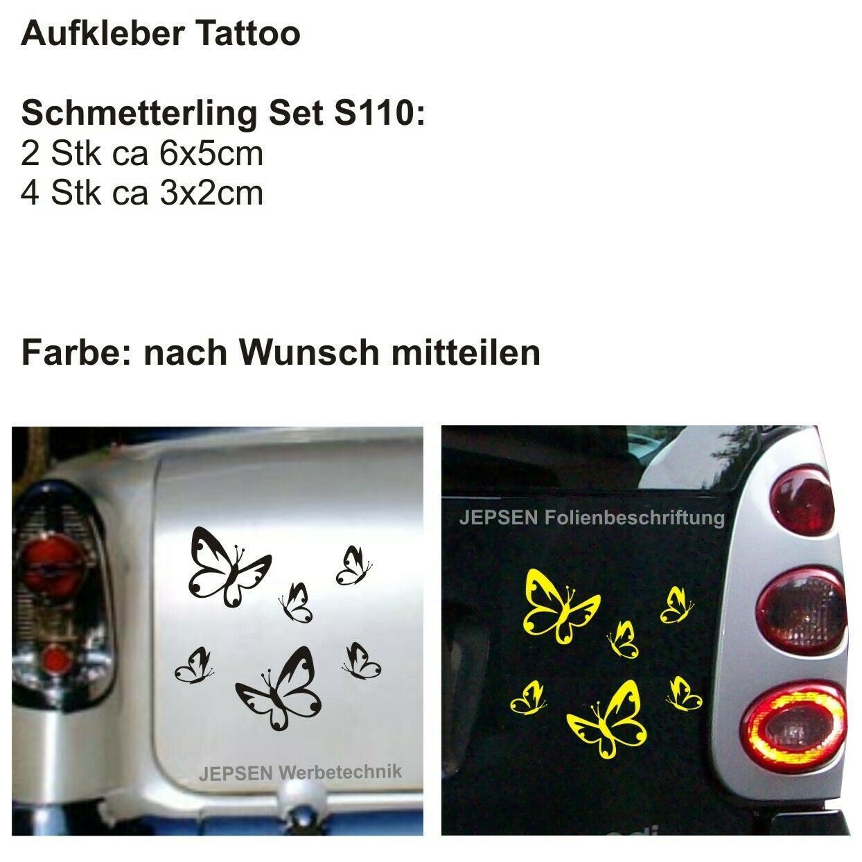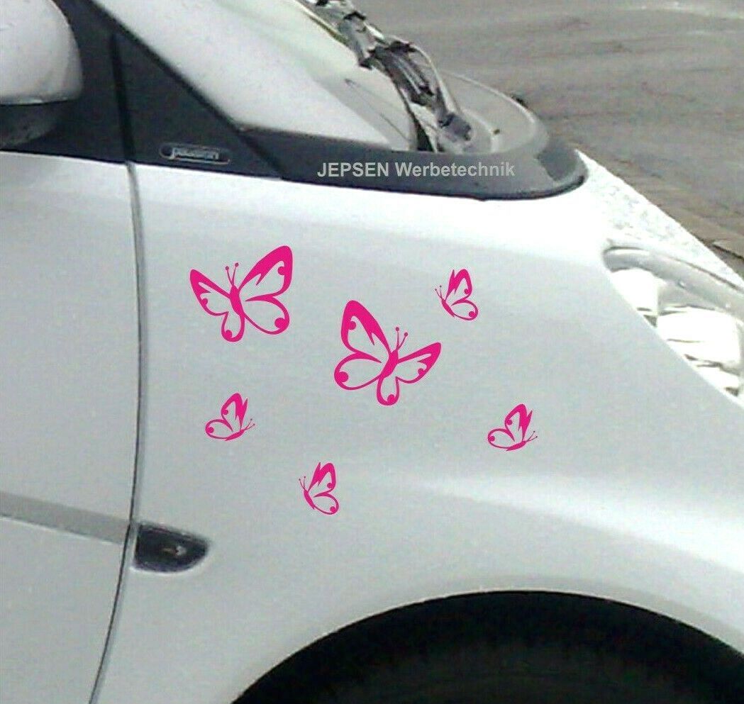 6 Aufkleber Schmetterlinge im Set S110 - einfarbig nach Wunsch - Farbauswahl