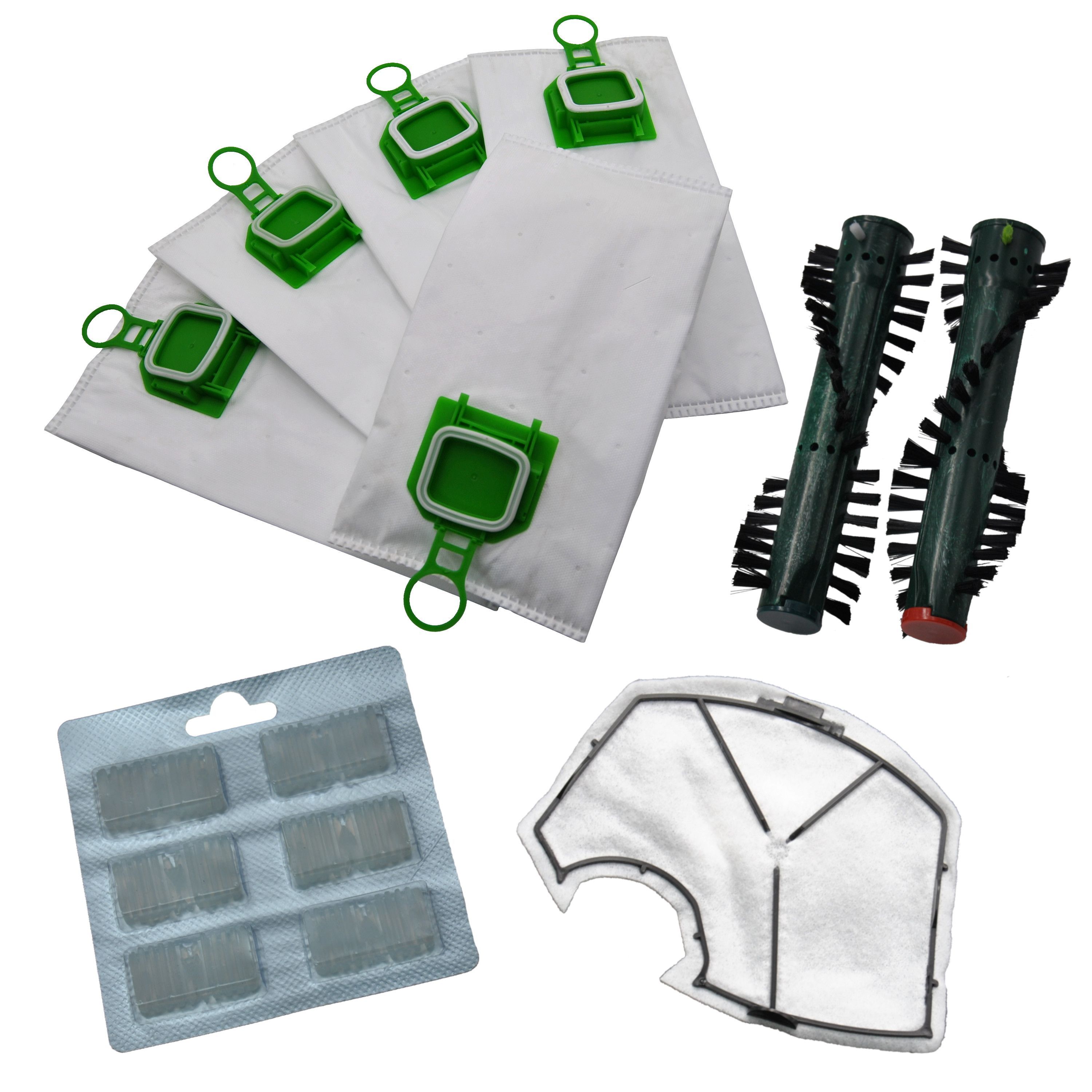 6 Beutel, Motorfilter, Duft, Bürsten geeignet Vorwerk Kobold 140 150 mit EB 360 370