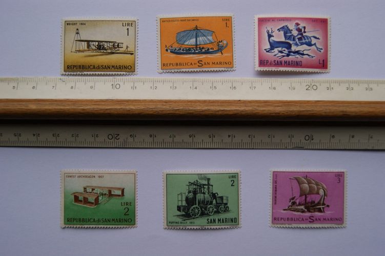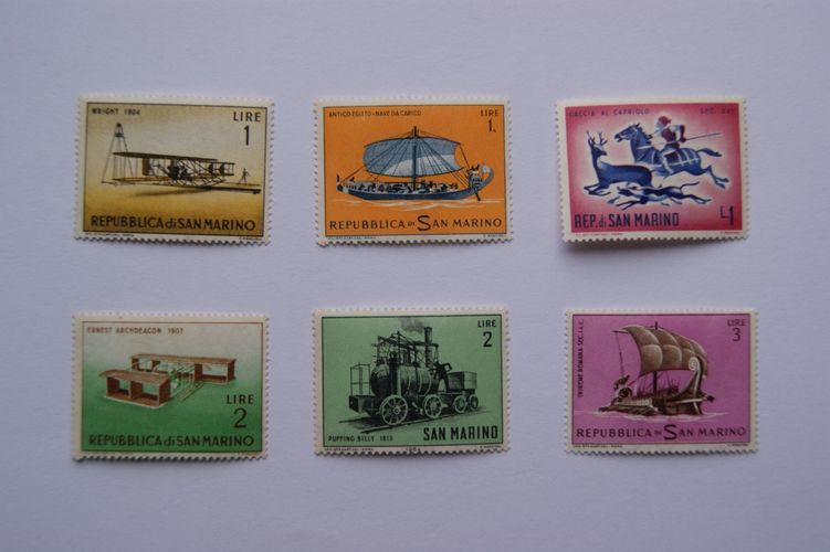 Sechs ungelaufene ungestempelte Briefmarken aus San Marino Die Angaben zur Größe, Bild und Wert bitte ich den Bildern zu entnehmen. Die rückseitige Gummierung ist vorhanden. Versandoptimierungen für den Kauf mehrerer Artikel sind durchaus möglich, was sich insbesondere bei Selbstabholern oder Pakets