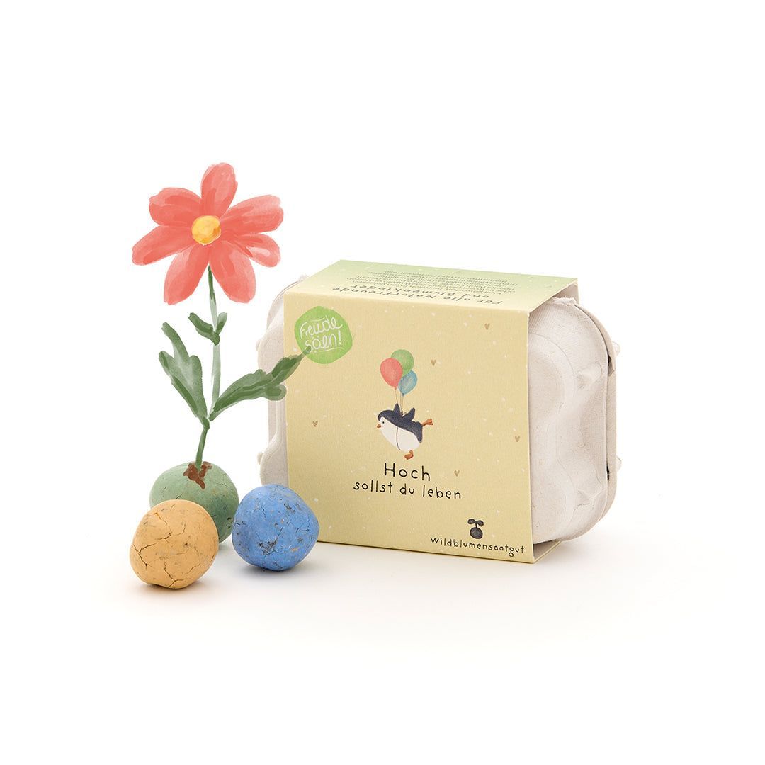 Die 6 bunten Blumenmurmeln im Eierkarton â??Hoch sollst du lebenâ?? sind eine originelle und nachhaltige Geschenkidee zum Geburtstag oder Jubiläum. Anstelle eines klassischen BlumenstrauÃ?es verschenkst du hier ein blühendes Erlebnis, das Freude im wahrsten Sinne des Wortes wachsen lässt.
