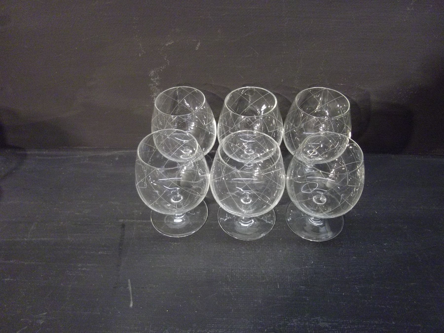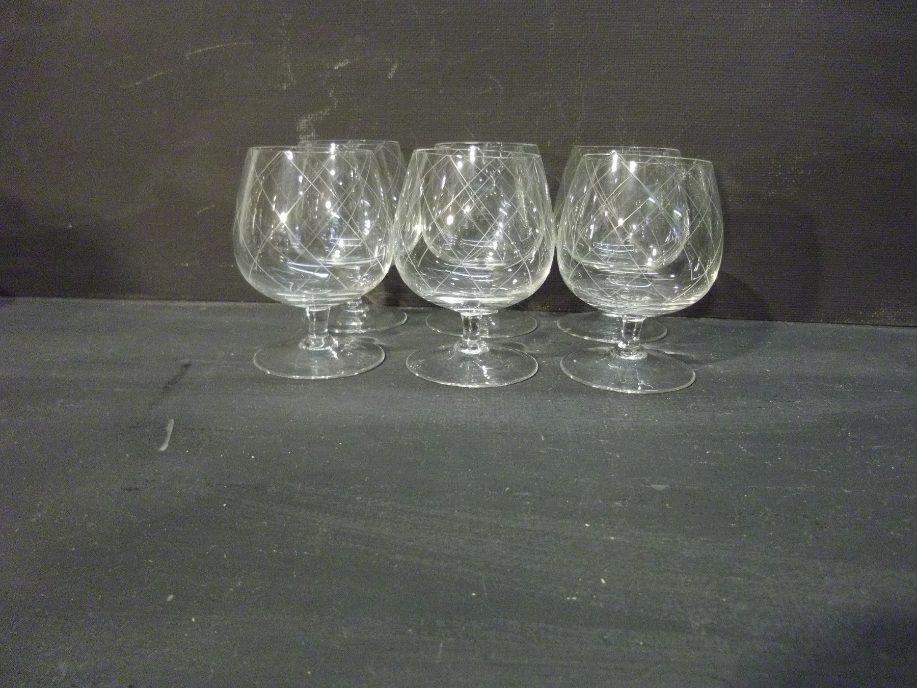 Sechs Cognac-Gläser um 1955. Ohne Marke. Maße: Höhe 9 cm. Antikes am Deich - Inh: Oliver Kipp-Trense