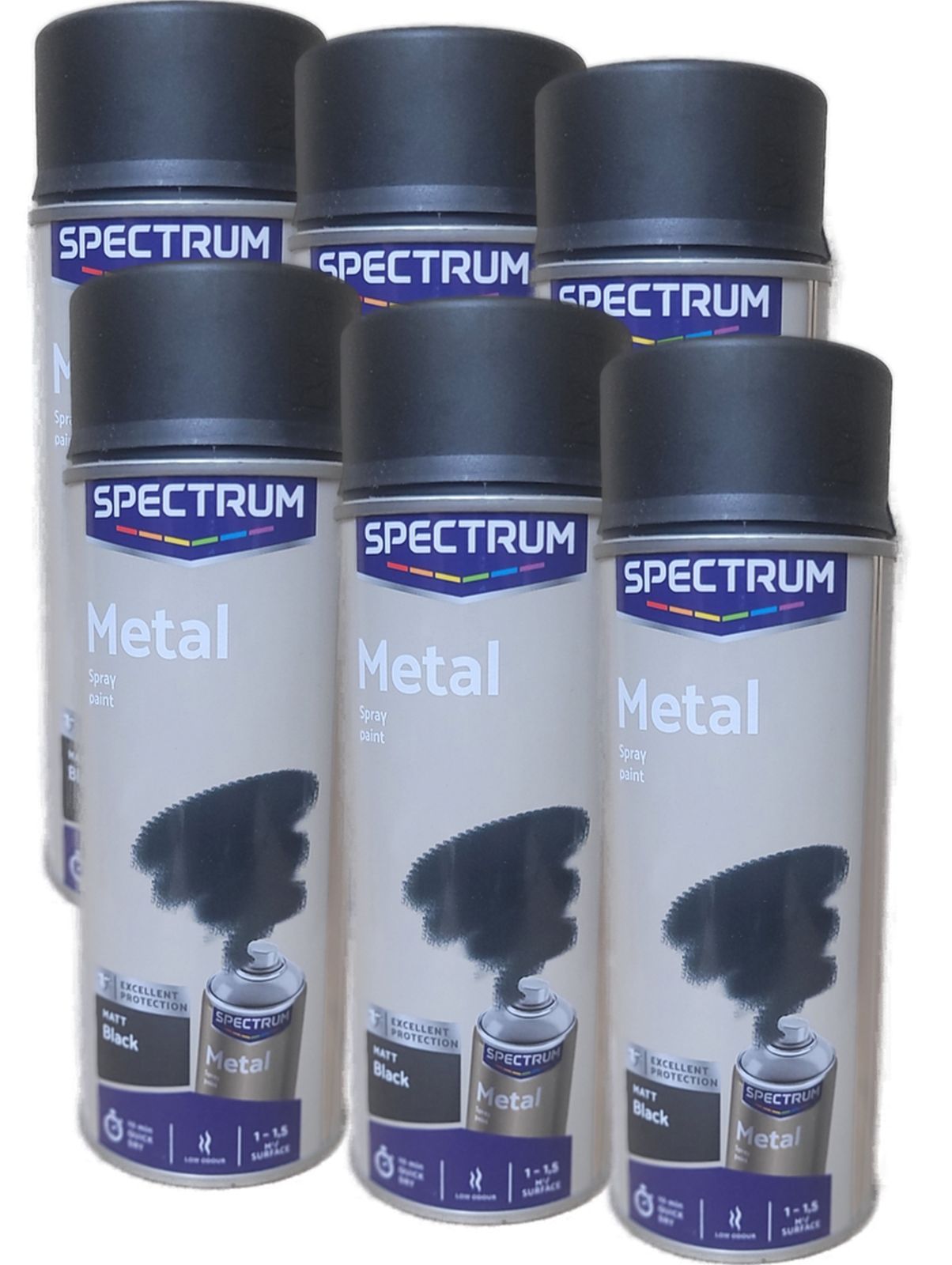 6 Dose 400ml Lackspray Sprühlack Lack Schwarz Matt Spectrum Metalllack