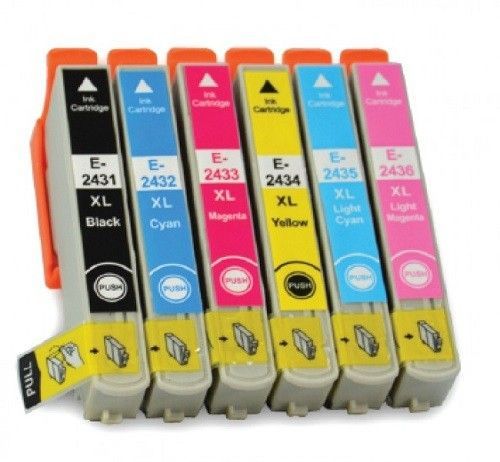 6 Druckerpatronen kompatibel mit Epson T26 XL, T2431 Black, T2432 Cyan, T2433 Magenta, T2434 Yellow, T2435 Light-Cyan, T2436 Light-Magenta (Elefant) für