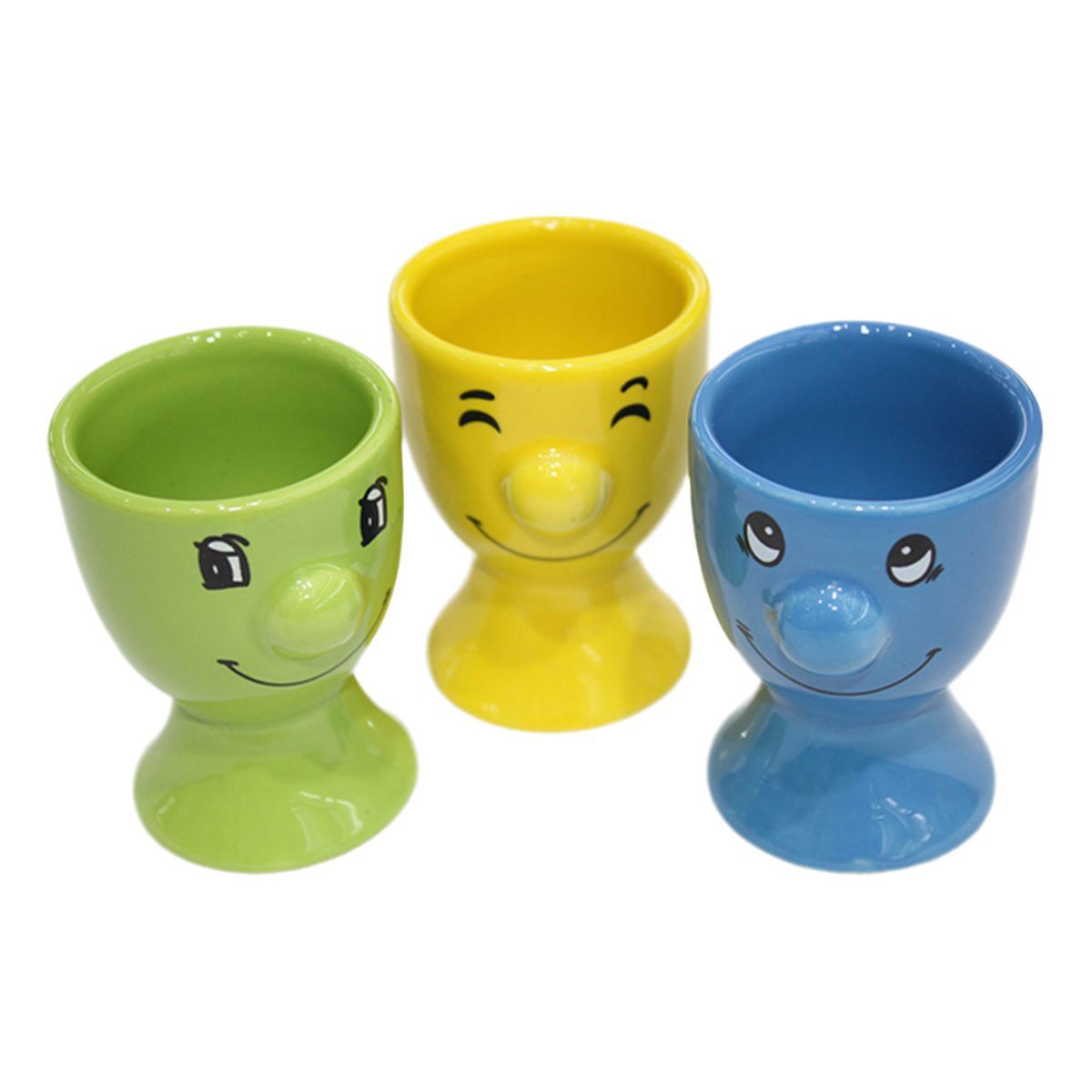 6 er Set Eierbecher aus Keramik mit Gesichtern Bunt Eierhalter Eier Becher