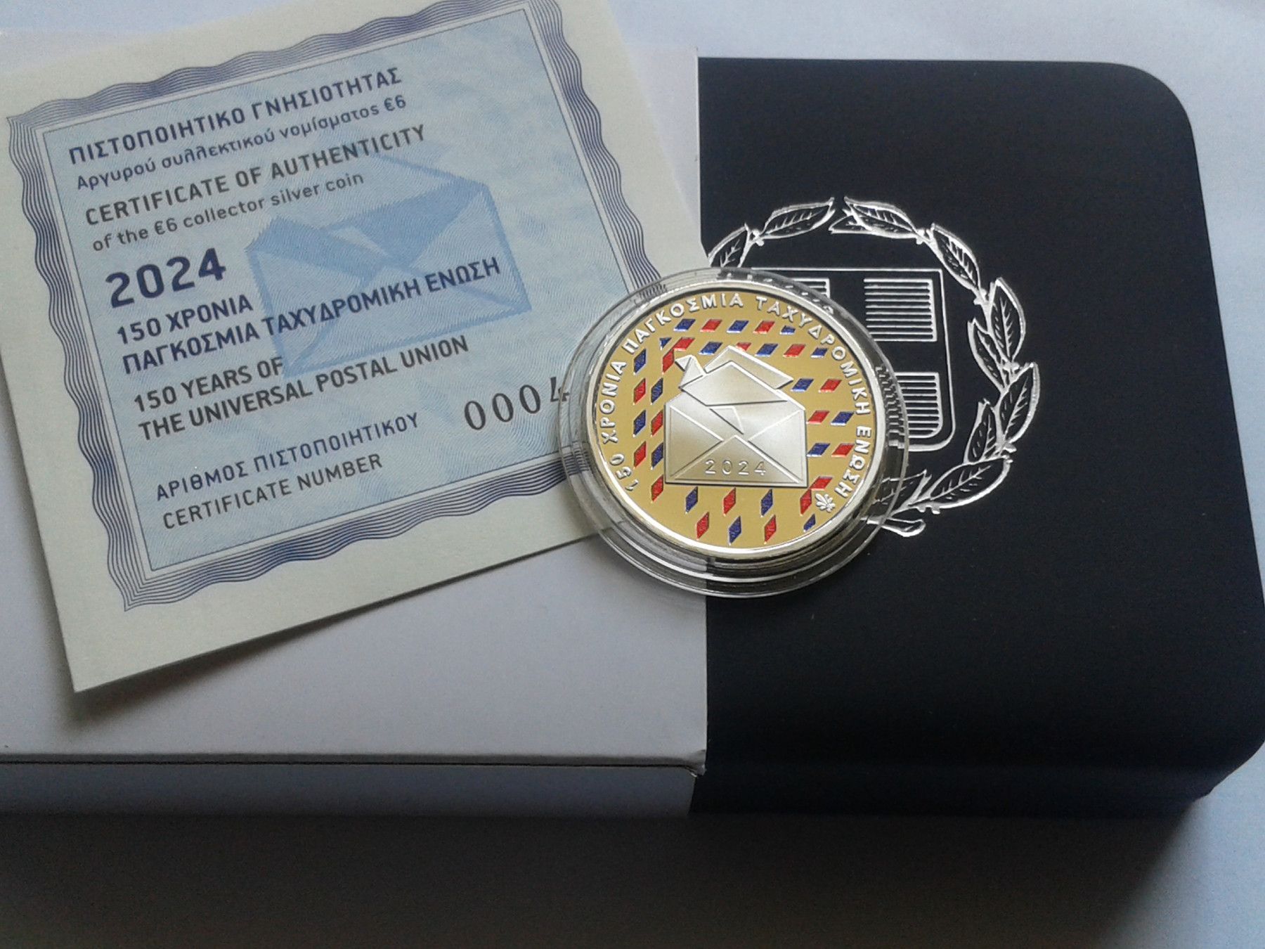 6 euro 2024 PP Griechenland Weltpostverein Postal union 10g 925er Sterlingsilber; original mit Etui, Zertifikat und Umverpackung. Besteuerung gemäss UstG§25a