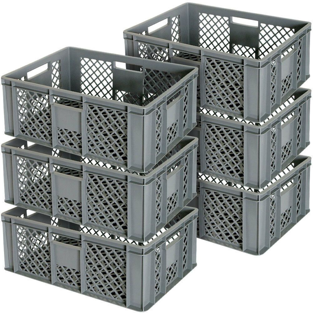 6 Euroboxen / Bäckerkisten, LxBxH 600 x 400 x 240 mm, grau, lebensmittelecht