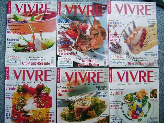 6 Ex. VIVRE - Nachrichten-Journal für Geniesser - ca. DIN A 4, je 116 Seiten - Rezepte, Reisetipps, Leichte Küche, - verlagsneu aus 10-12 2004 + 1-4 2005